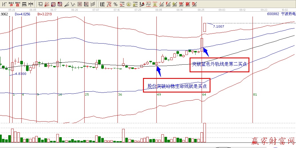 (2)股價在8月25號突破了極反通道藍色外軌線位置,形成價格上的買點,同時再當天也出現了時間窗口,即時價共振,作為波段投資者,波段交易可以做適當的加倉,而短線投資者也可以適當買進。