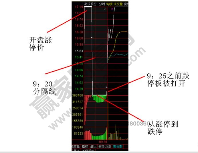 股價在集合競價中從漲停到跌停的走勢,是非常特殊的,在這個集合競價的過程中當(dāng)然肯定有資金在背后的操作。那究竟這種走勢是怎么樣的?我們來看高樂股份在2015年11月2日的分時走勢圖。