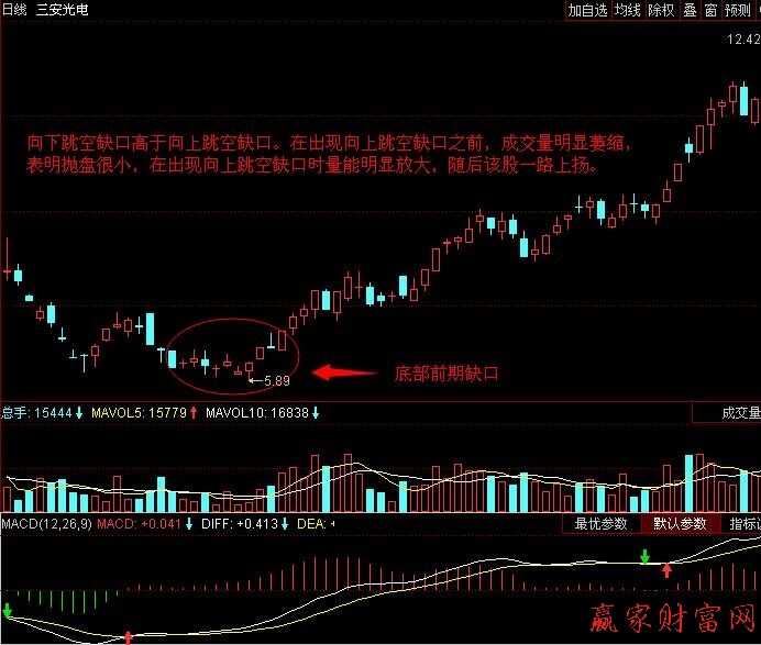 2.出現向下跳空缺口時不需要放且配合,而出現向上跳空缺口時則有量能配合。