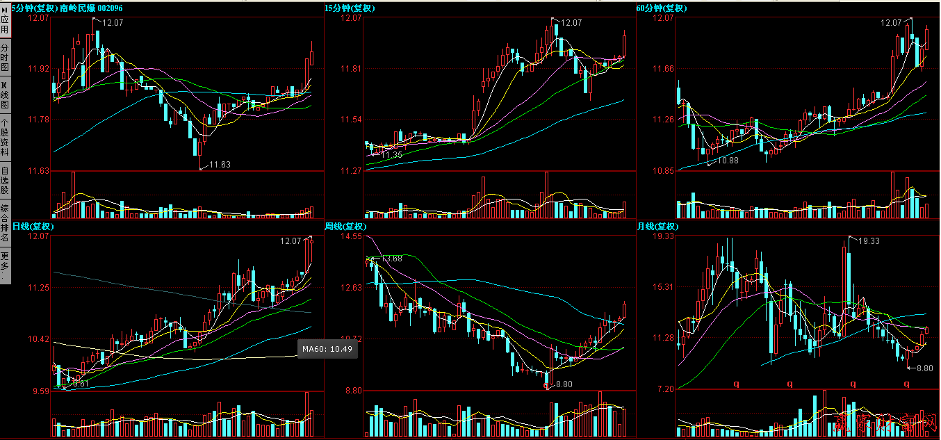 下面我們來看看具體個股002096南嶺民爆的多周期分時圖情況:
