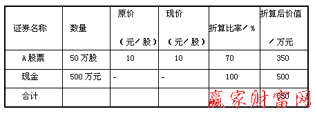 假設:某證券公司規定授信時的保證金比例為50%,最低維持擔保比例為130%;證券交易所公布的A股票折算率為70%,證券公司對折算率不作調整,計算時融資融券的利息和費用忽略不計。授信時,擔保品的折算價值計算見下表。