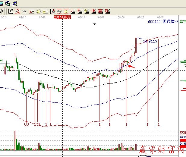 從圖中可以看出,在時間點上,股價都發現了變化。該股的整體趨勢是在上升的,具體買賣點把握就要看該股的支撐了,只要是在支撐上都可以來操作。近期的一波上漲,時間是在8月13日,正好股價在極反通道上軌線上獲得支撐,時間到了,股價也獲得支撐,投資者是可以參與的。按照極反通道規則,站穩一線,看高一線,上軌線價格不破就看到紅色上軌線,目標就是這樣做的。