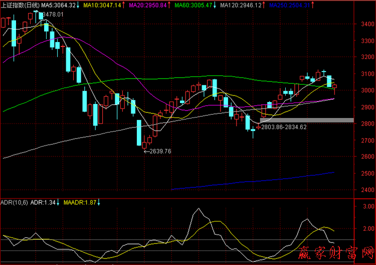 股市上升趨勢進入震蕩期時,ADR形態(tài)走勢仍比較穩(wěn)健,并且一直在1的上方,并且在盤整期間創(chuàng)出歷史的新高,那么我們一般就認為,這不是見頂?shù)男盘枺@是一個暫時的停頓而已,接下來股價會進一步拉升的可能性大,股市的升值趨勢會繼續(xù)下去。